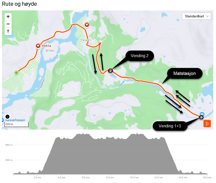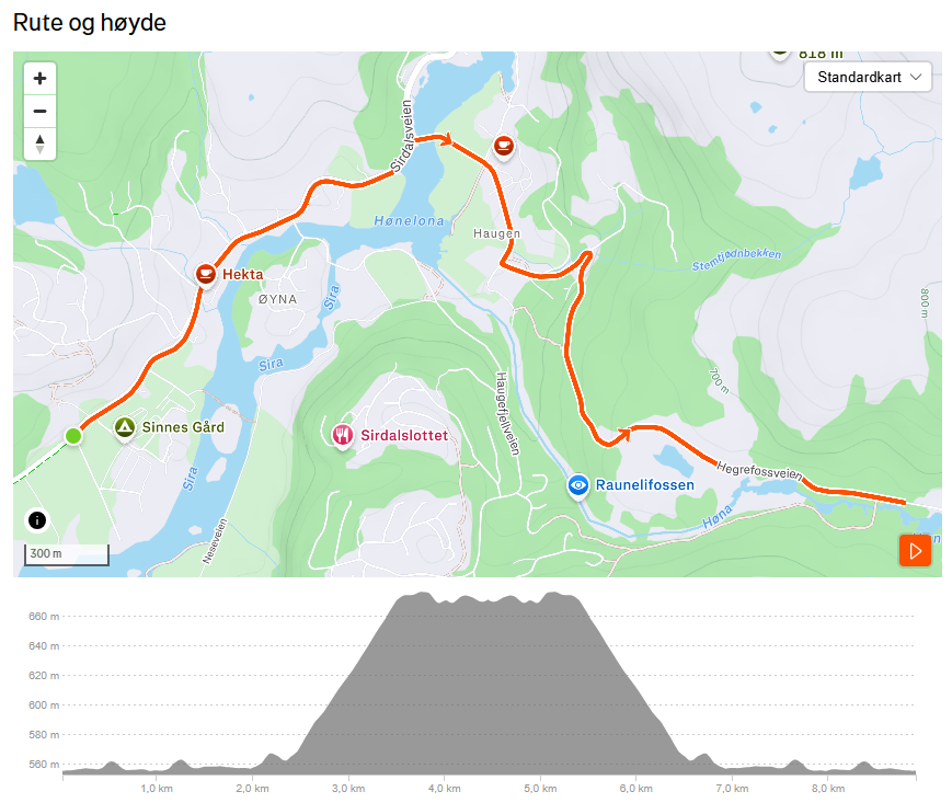 Kort løype (9 km) Link: https://www.strava.com/routes/3469666256764379206 Lang løype (16 km) Link: https://www.strava.com/routes/3469705535918344794
